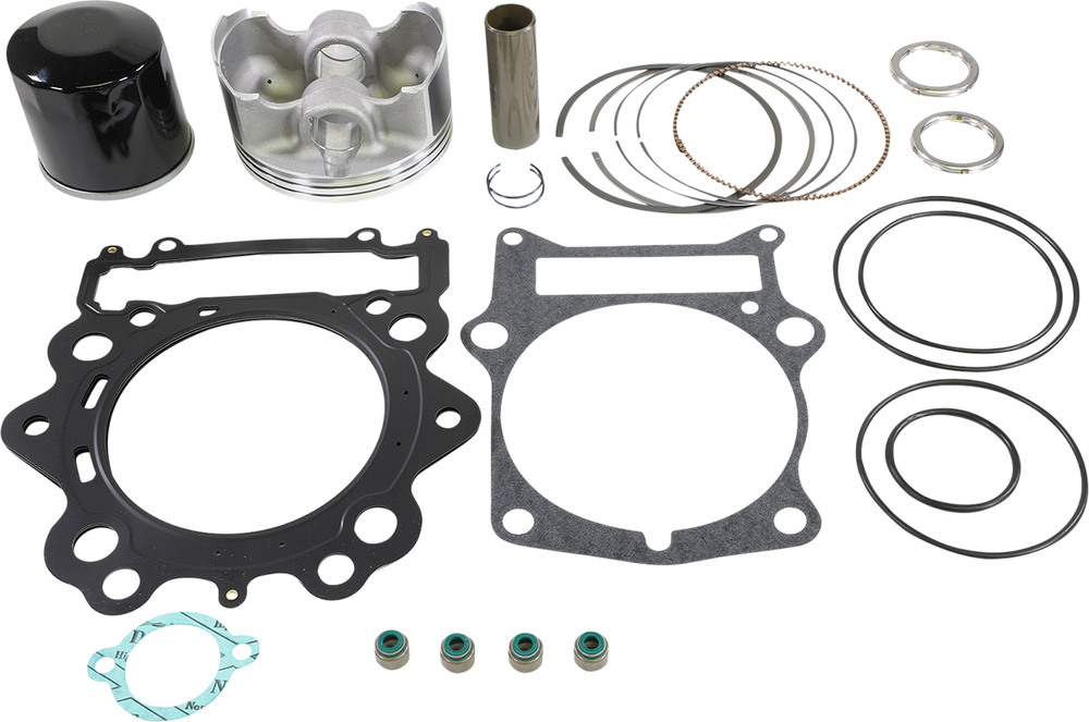 • Includes pistons, rings, pins, clips, needle bearings, head and base gaskets and intake and exhaust gaskets and oil filter for 4-stroke models