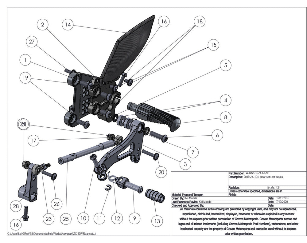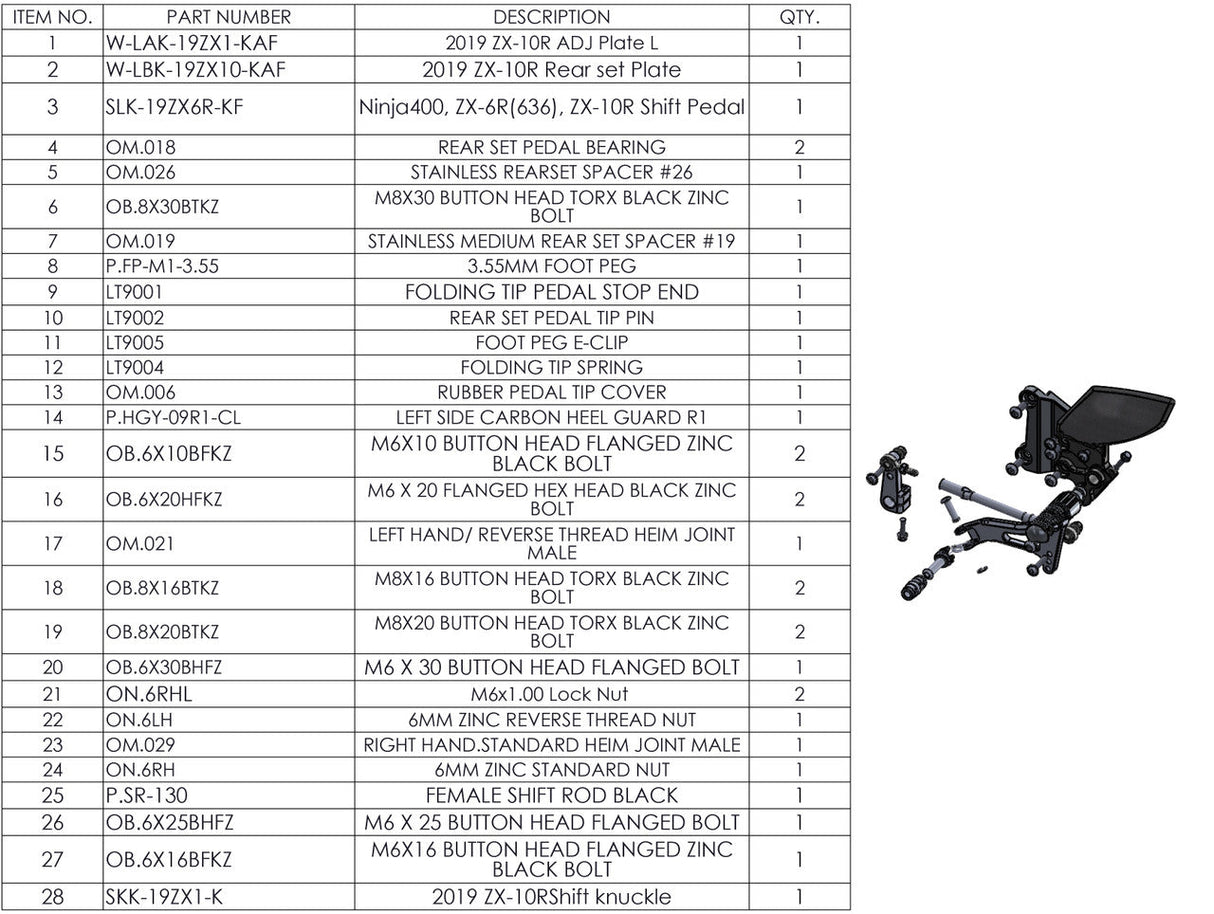 Graves WORKS 2016-2023 Kawasaki ZX10 rearset features