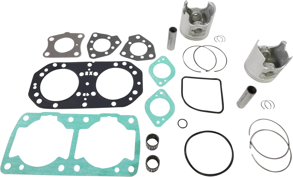 - Include pistons, rings, pins, clips, racing needle bearings, head and base gaskets, intake and exhaust gaskets