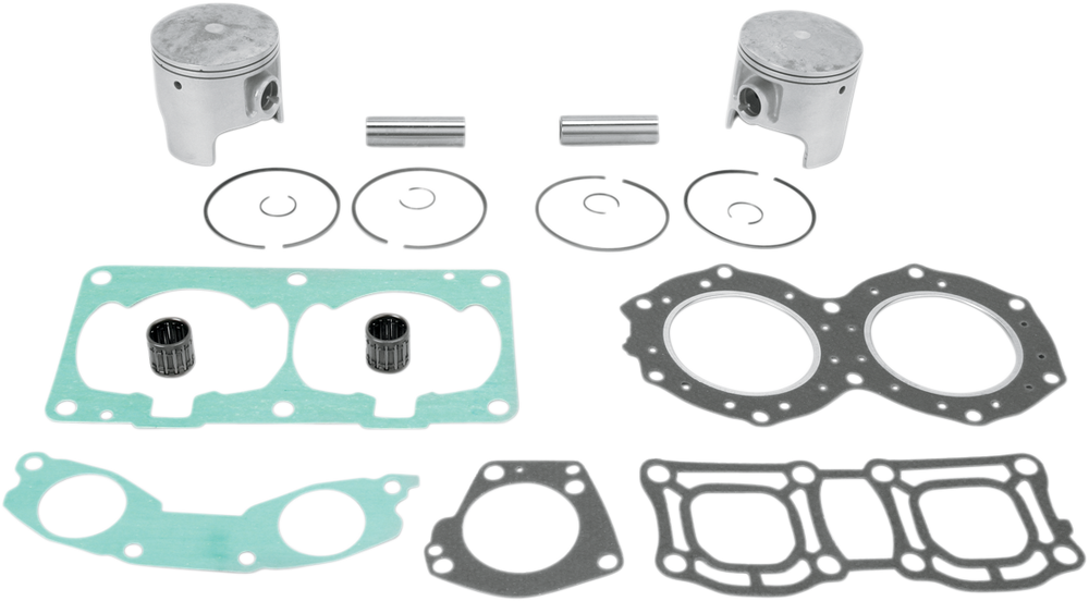 • Include pistons, rings, pins, clips, racing needle bearings, head and base gaskets, intake and exhaust gaskets