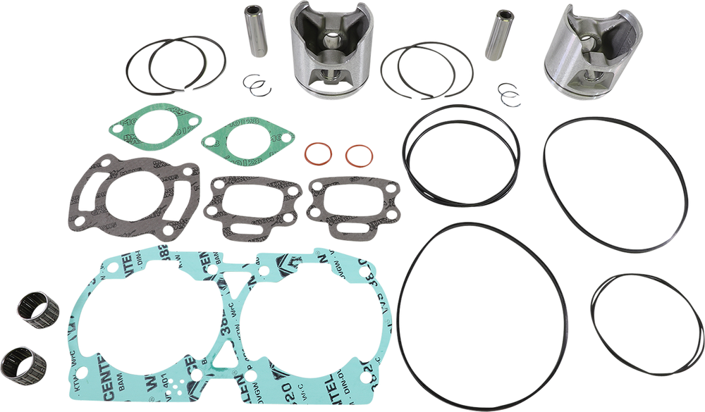 • Include pistons, rings, pins, clips, racing needle bearings, head and base gaskets, intake and exhaust gaskets
