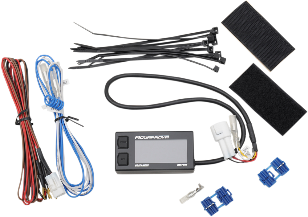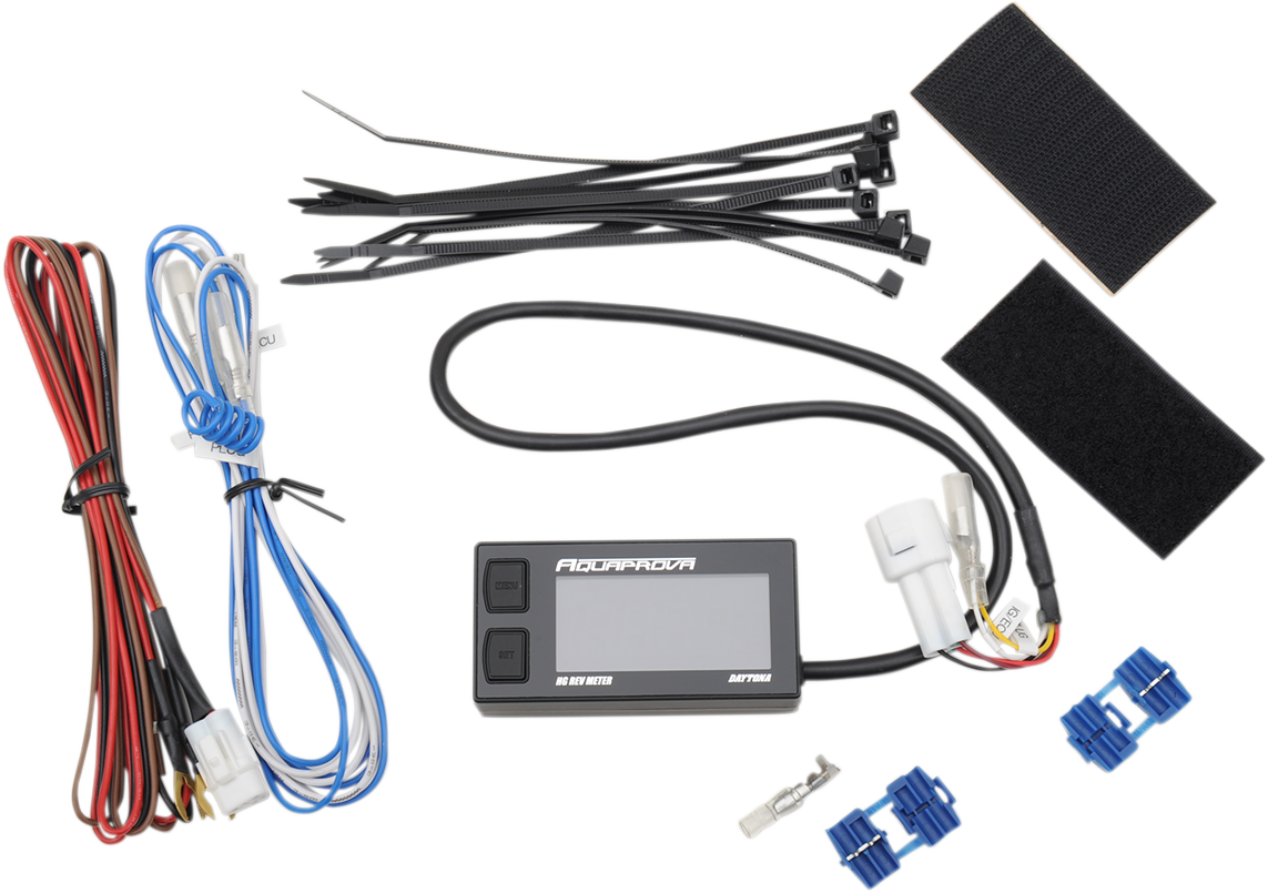 • Tachometer features adjustable sensitivity and updates every 0.3-0.6 seconds, with a range of 0-19,999 rpm