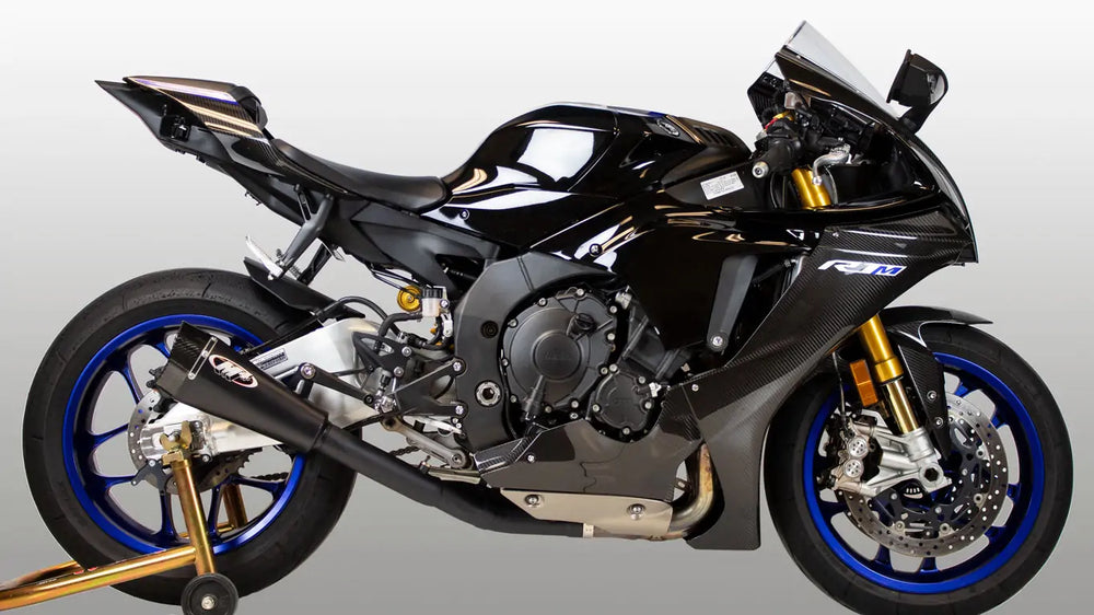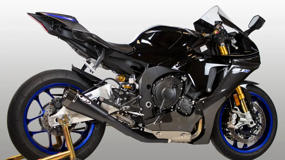 M4 Exhaust RM1 Black Slip On w/ black Cat. Eliminator 2015-2025 R1 YA9942-CE