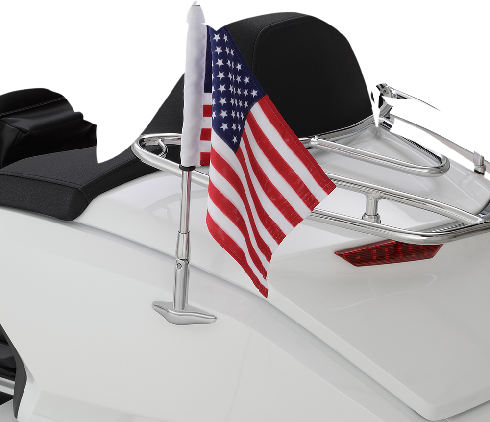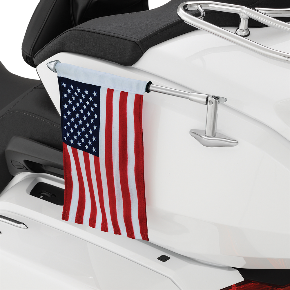 - Includes all required hardware, chrome flag pole, chrome mount, and US flag