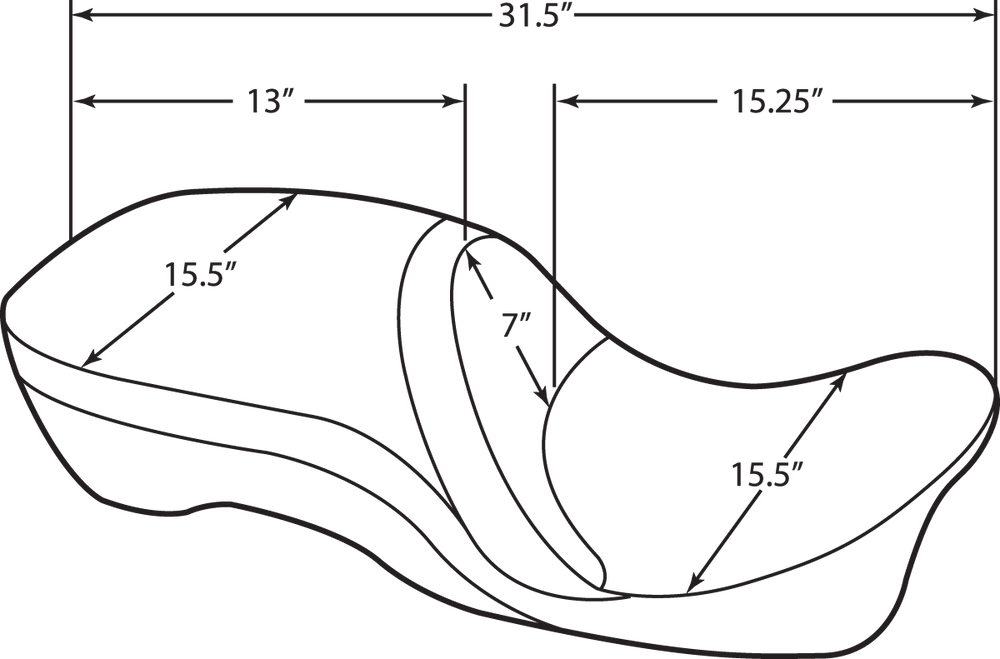 • The driver area is cut narrow in the front and is approximately 1" lower than the stock seat
