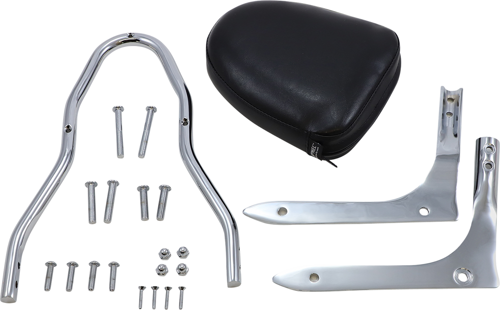 - Kit includes sissy bar, pad, mounts, and mounting hardware