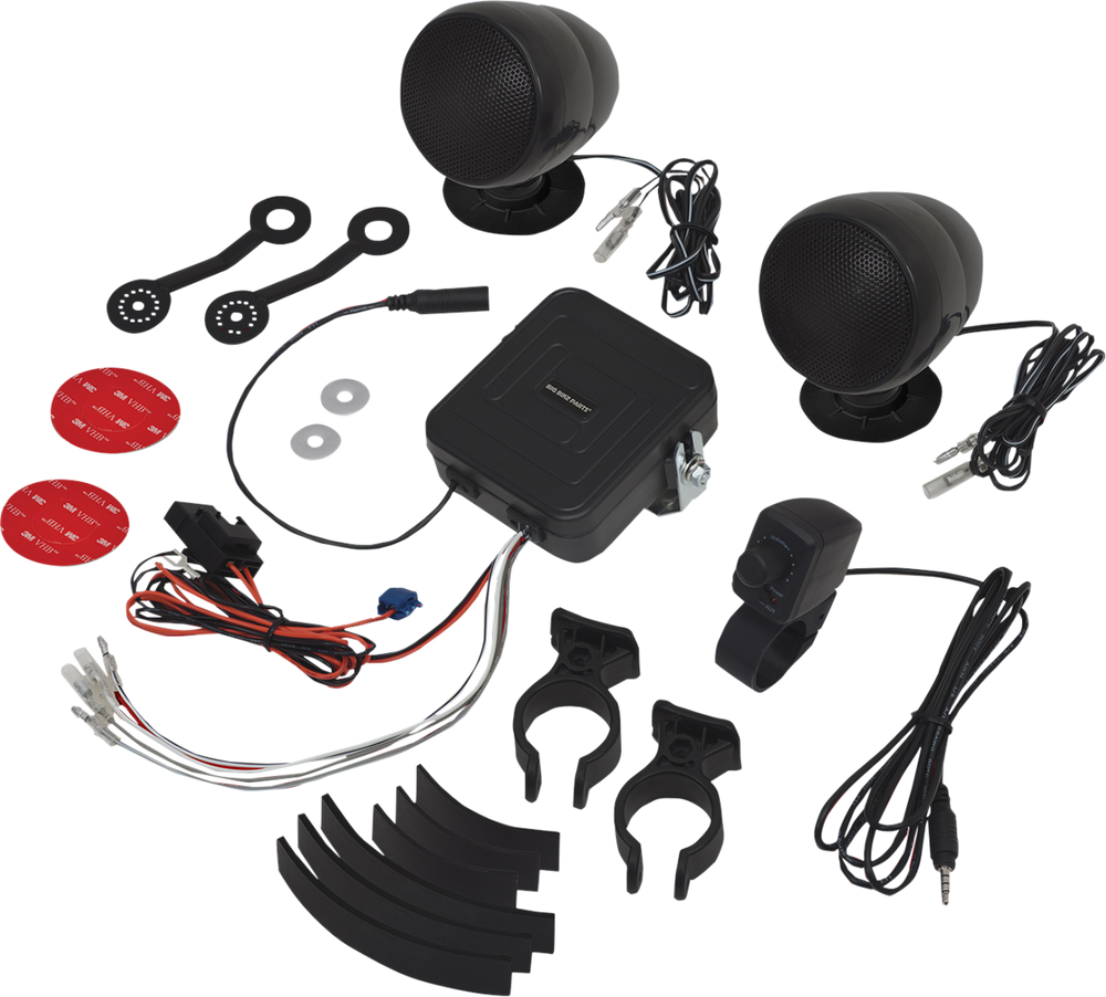- Universal clamps allow mounting directly to the handlebars, positioning the sound where you want it