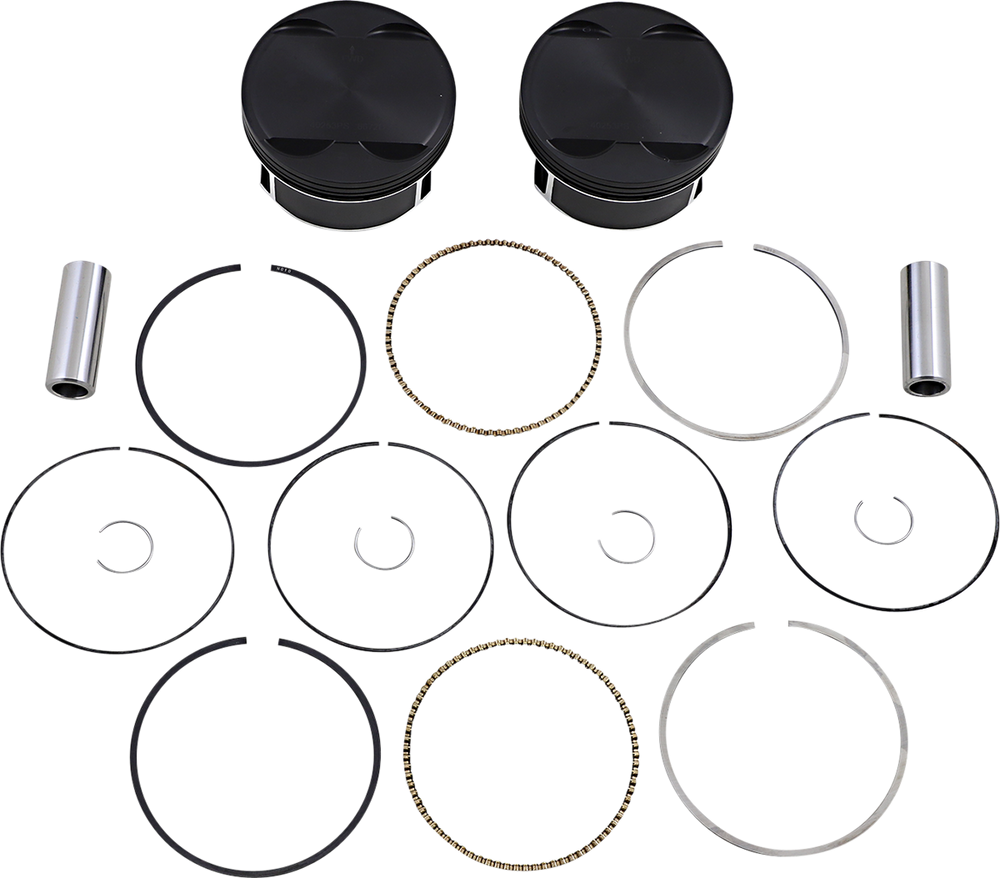 • Kit includes two pistons, rings, piston pins and circlips