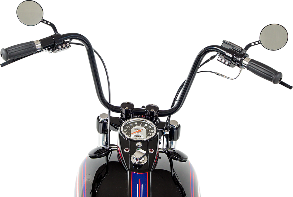 - Fat Bob-style tanks accept stock dash, speedo equipment and standard late-model (22mm) Harley petcocks