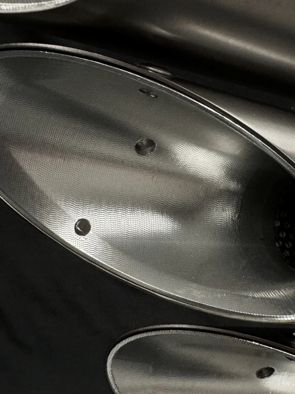 The surface finish is a natural brushed finish that, when heated, changes to an iridescent blue and red. Unlike stainless steel, Titanium won't stain, corrode or ever need polishing due to Titanium's high acid and salt resistance, which also dissipates heat twice as fast as steel, further safeguarding against extended heat soaking into body panels when stationary.