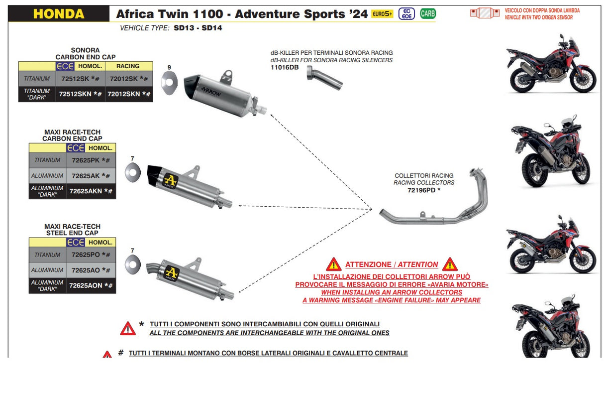 72196PD Arrow Stainless Steel Racing Collector for Honda CRF1100L 2024-2025