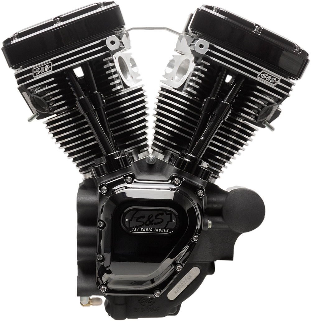 High Compression, 10.8:1 for the ultimate in street performance No fuel system or ignition systems included Special head machining fits stock length intake manifolds (S&S manifold size 410) Stock style breathing system; compatible with stock and most performance air cleaners Includes Super Stock heads, crankcases, high flow oil pump, cam cover and easy start cams Specs: displacement 124"; bore 4-1/8"; stroke 4-5/8"; 640 cam; piston type forged flat top Oil line installation kit required. Cylinder heads on T-Series long block engines are 99-05 style. Owners of 06 models will need to purchase a set of 99-05 style, offset intake flanges. Cylinder heads on these engines are specially machined to compensate for the non-stock cylinder length. As a result, they are compatible with manifolds and throttle bodies with stock length intake runners. In addition, the breather vent bolt locations have been adjusted so they are in the stock location, so stock style air cleaner back plates will bolt up to these engines.
