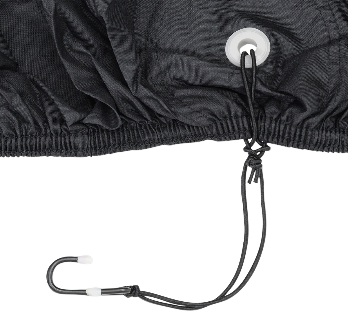 - Elastic hem and bungee cord for tie down