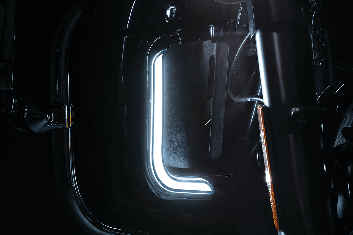 • Intense, fully diffused L.E.D. lighting with full-time white running lights and amber switchback turn signals when activated