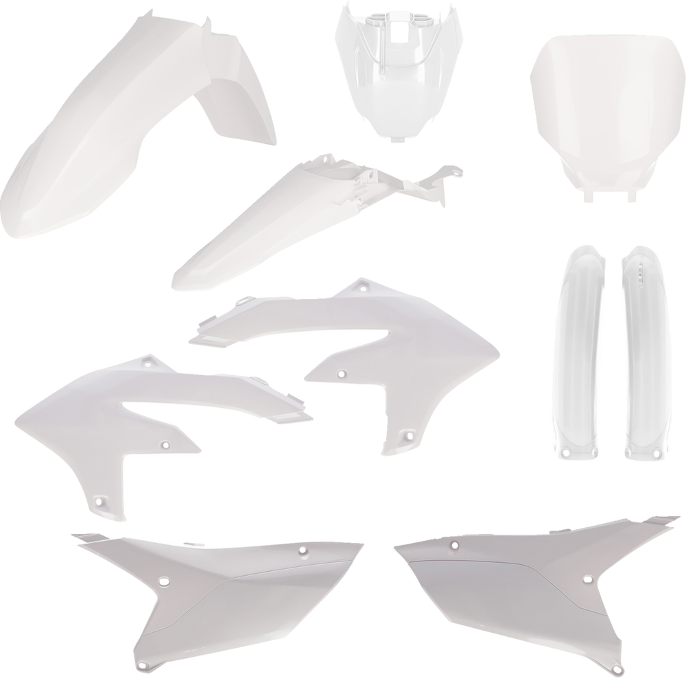• Full kit includes front fender, front number plate, lower fork cover set, radiator shrouds, side panels, and rear fender and airbox covers (unless noted)